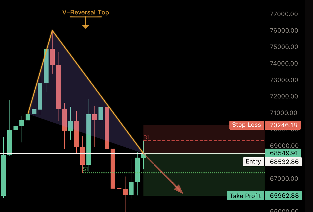 Entry, stop loss, take profit — calculated instantly. See your risk-reward ratio before committing capital.